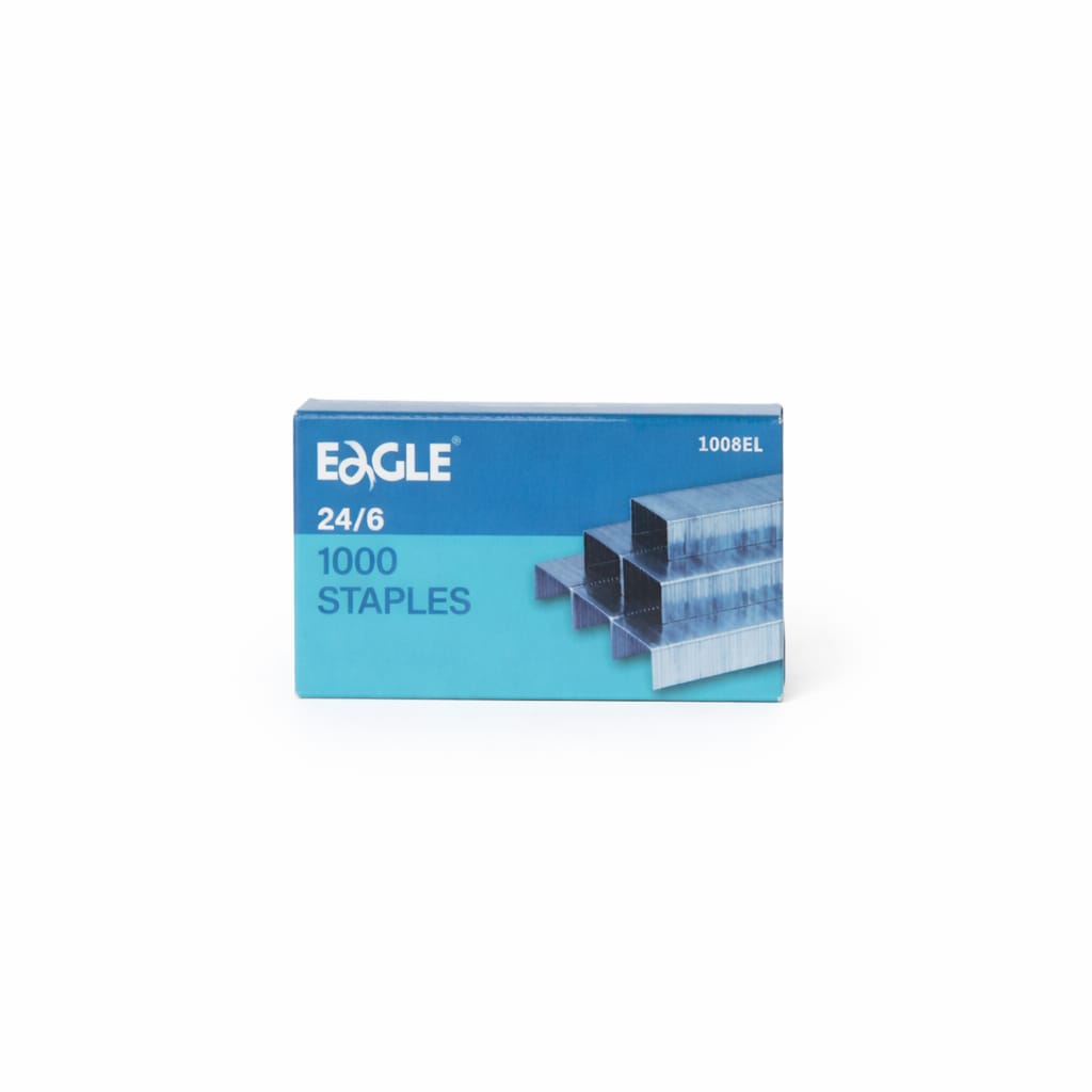 Оцинкованные заточенные скобы №24/6. Изготовлены из высококачественной стали. В картонной коробочке — 1000 штук.