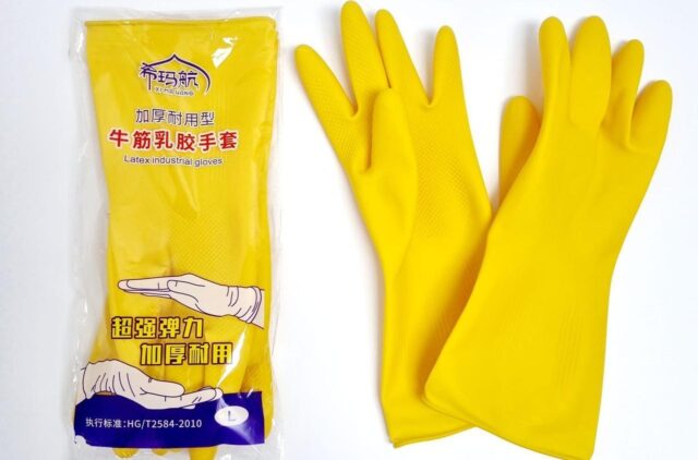 Перчатки гелевые, желтые, плотные. Для уборки помещений.