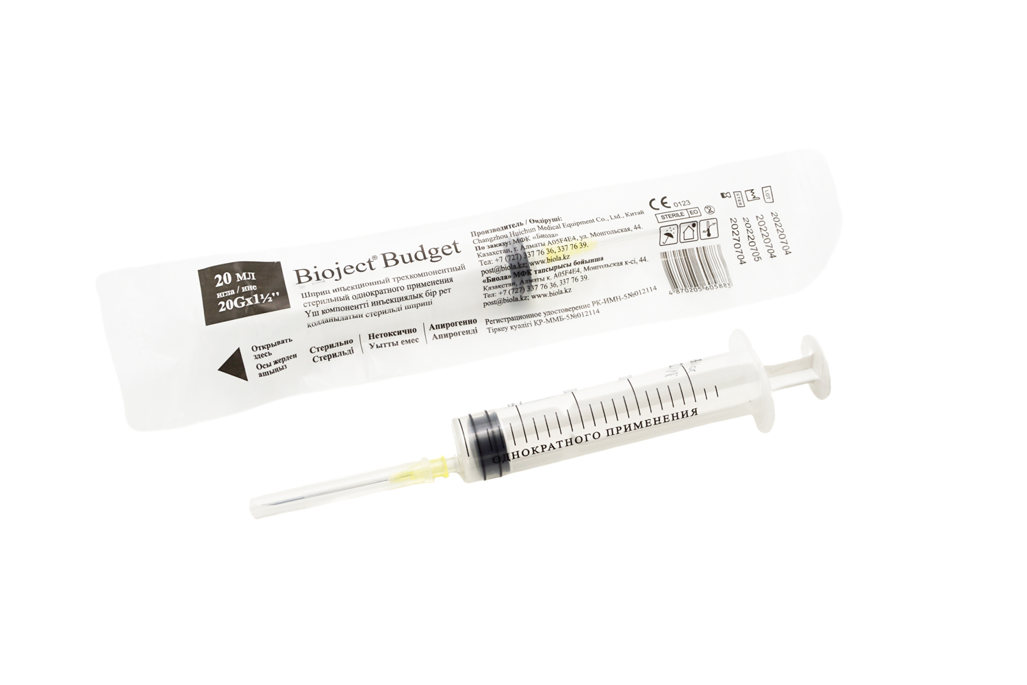 Шприц "Bioject" Budget 20 мл с игл 20Gх1 1/2 инъекц. 3х-комп.стерильный